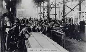 One of the boiler shops in the engineering works of Aveling & Porter, manufacturers of steam engines and traction engines.