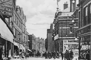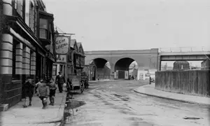 Looking north towards the railway arches. The Gem Cinema is visible on the left. The Gem was opened on Christmas eve 1910 and had seats for 700 customers.